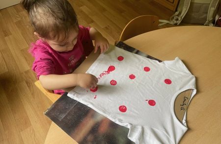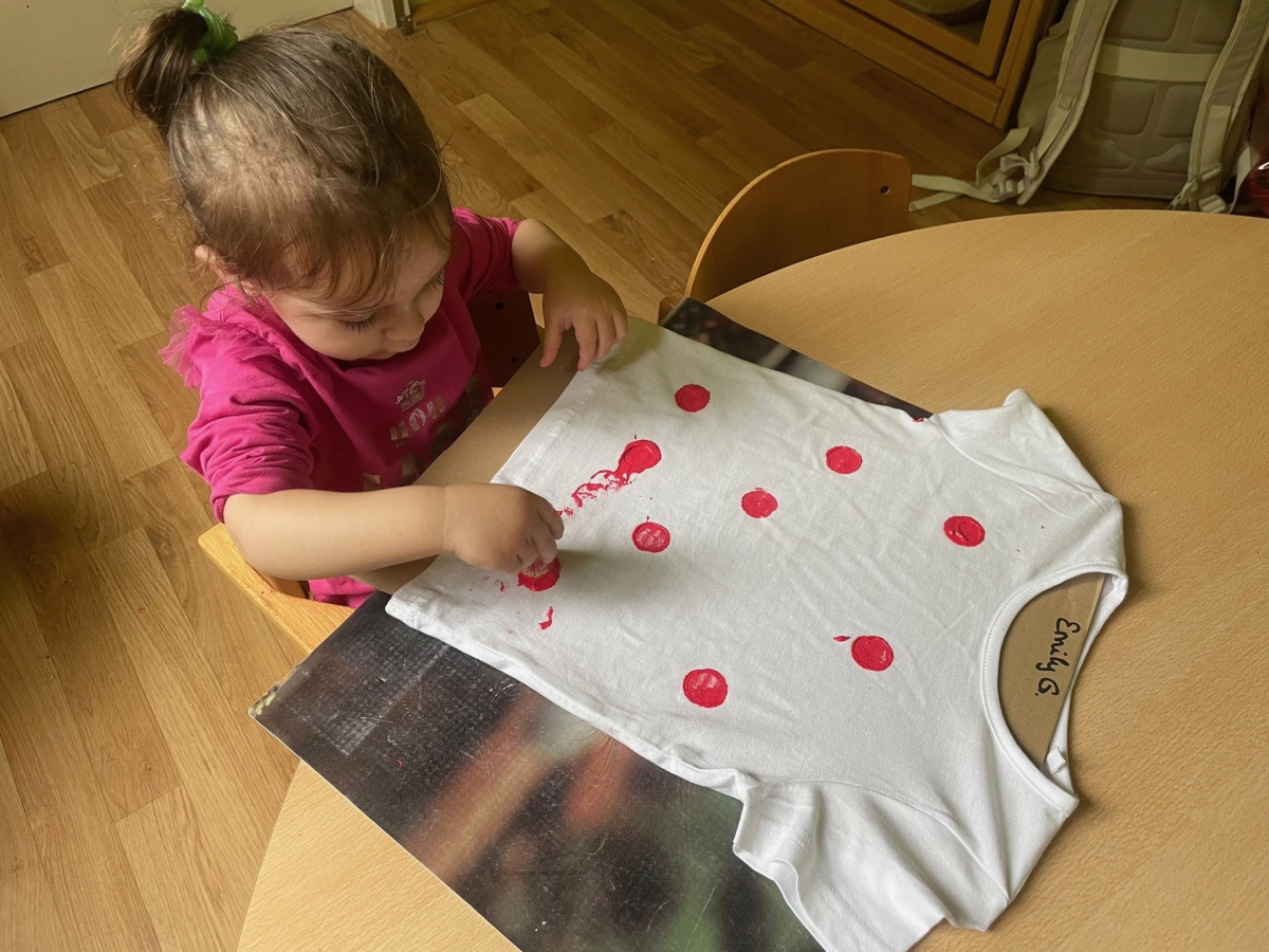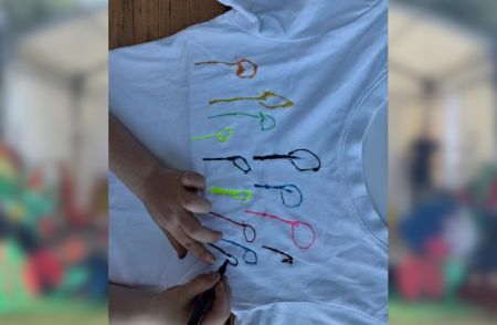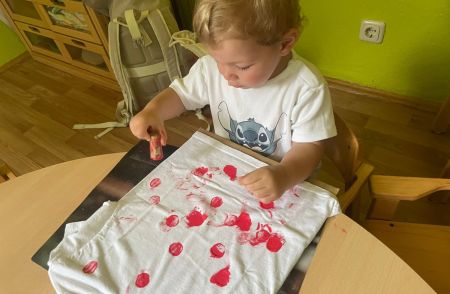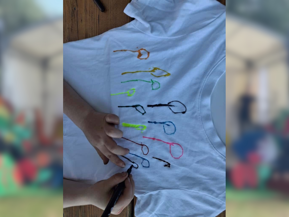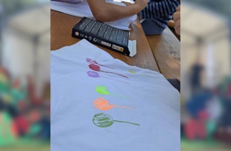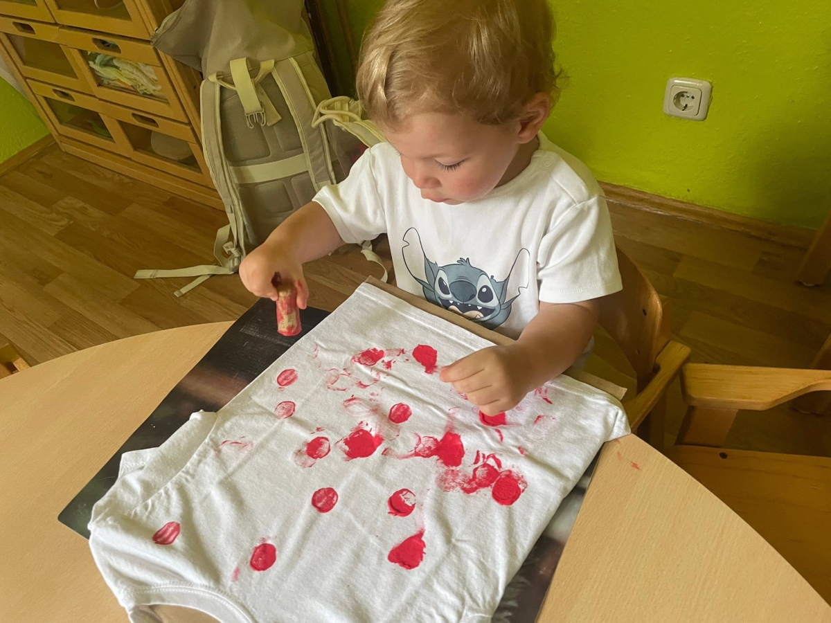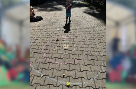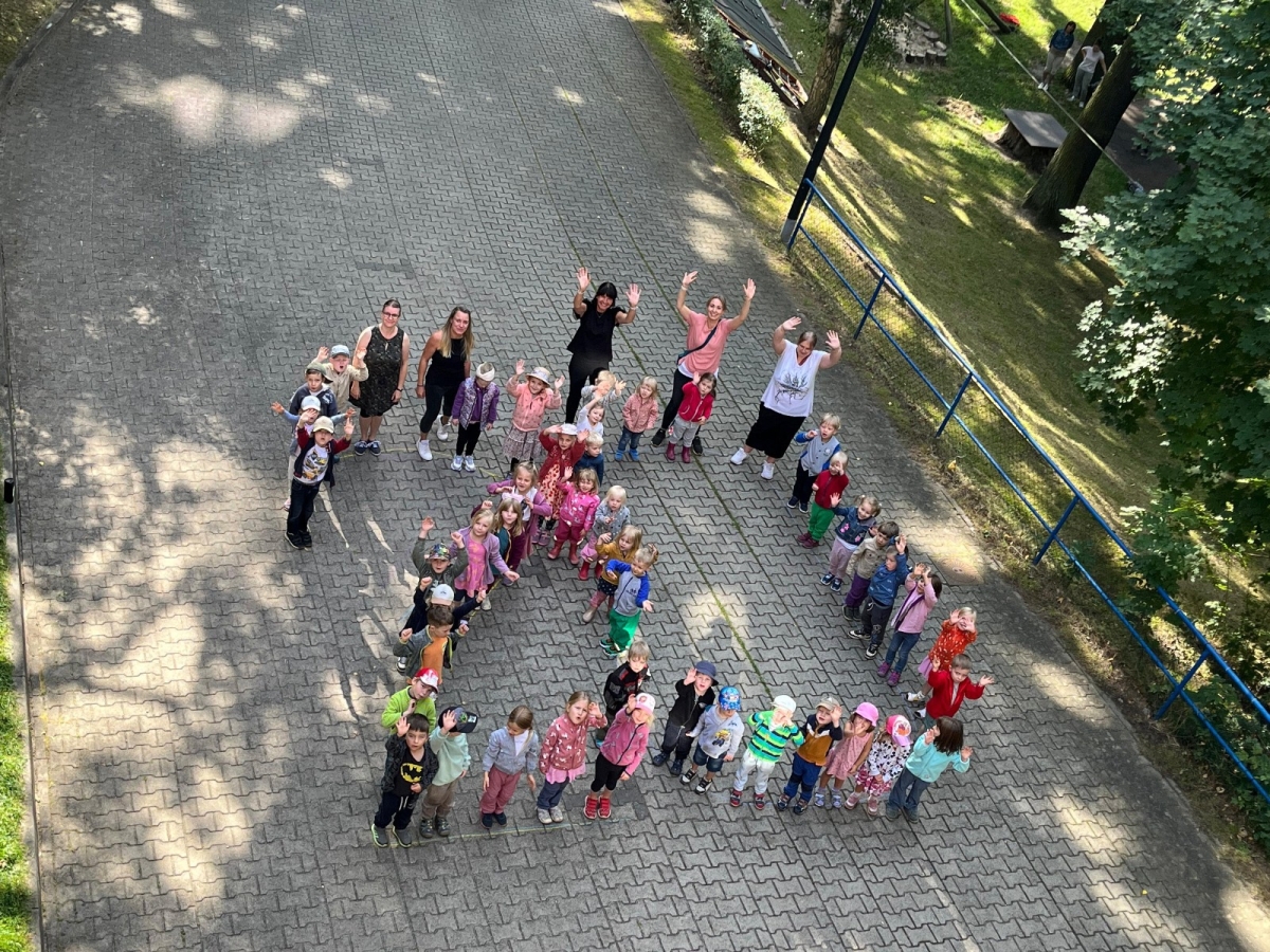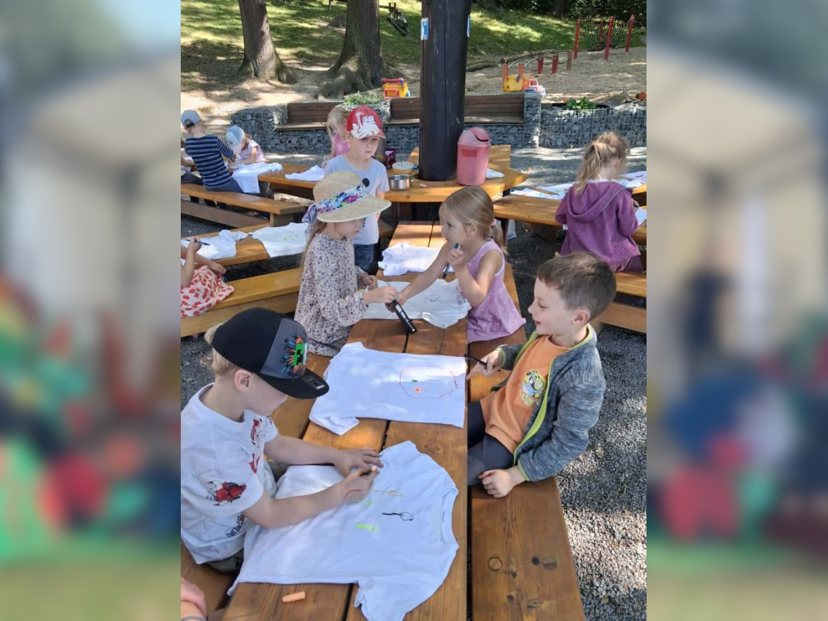 Gemeinsam stellten die Kinder die Zahl „20“ auf dem Hof nach – ein wunderschöner Anblick! Anschließend durfte jedes Kind sein eigenes Jubiläums-T-Shirt bemalen, das viele stolz durch die Woche trugen.