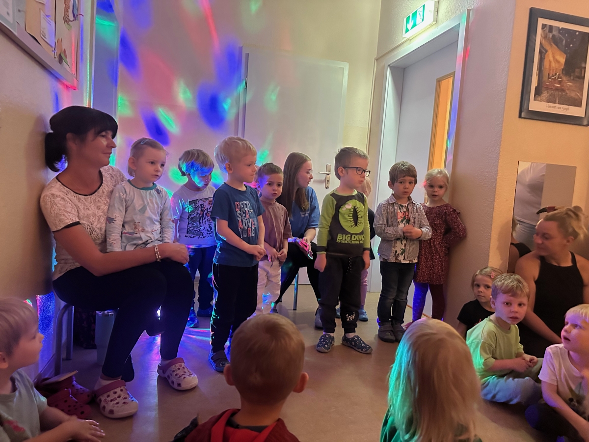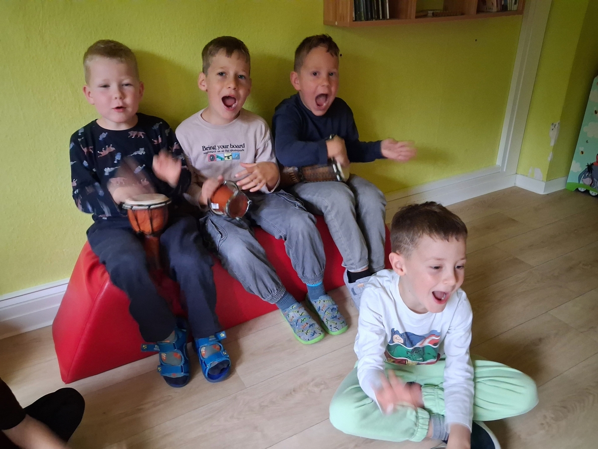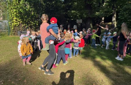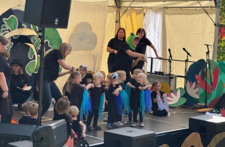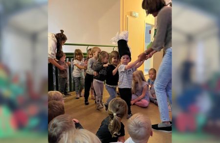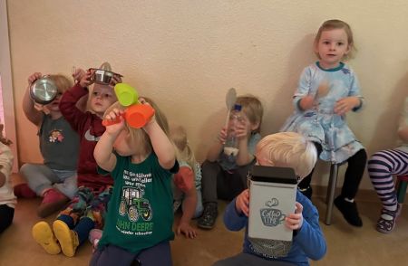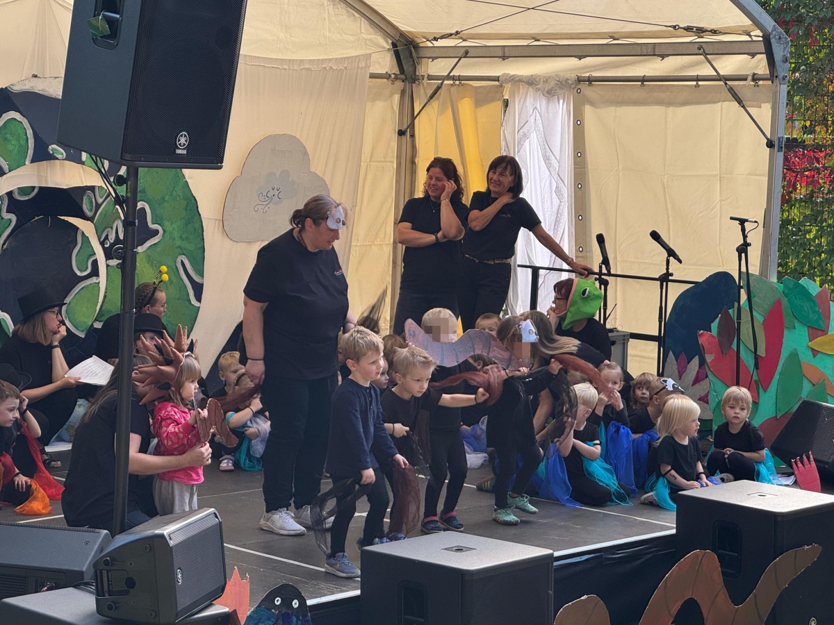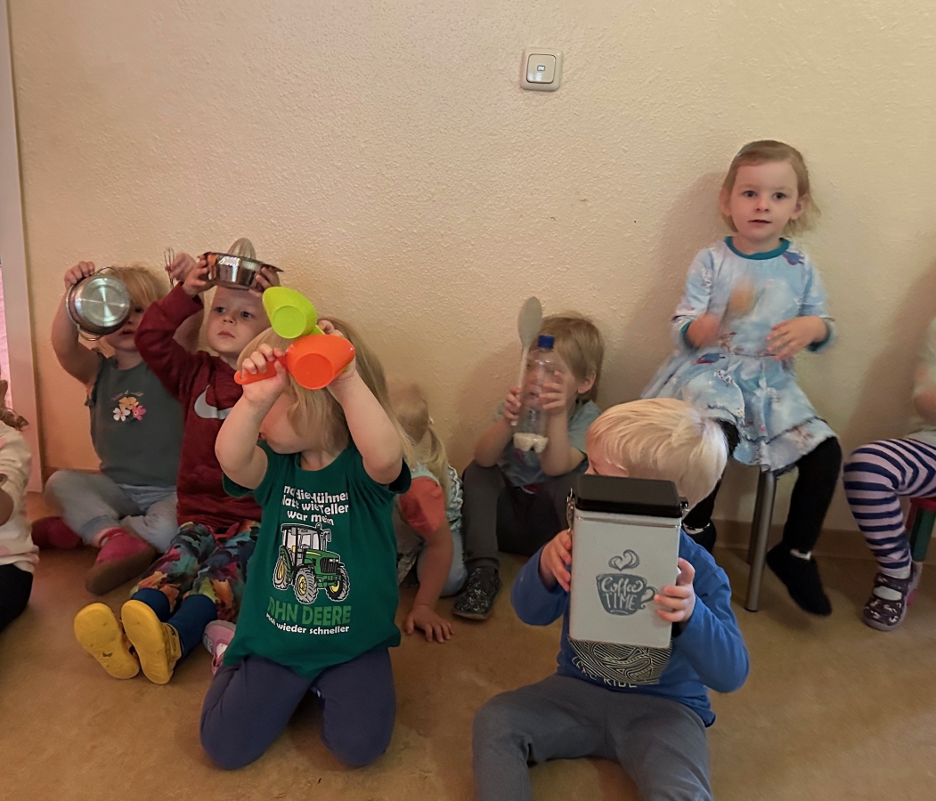 Jede Gruppe präsentierte ihr Lieblingslied, und es entstand ein kunterbuntes Konzert voller Freude und Bewegung. Besonders viel Spaß hatten die Kinder beim Orchester aus Haushaltsgeräten und beim schwungvollen Zeitungstanz.