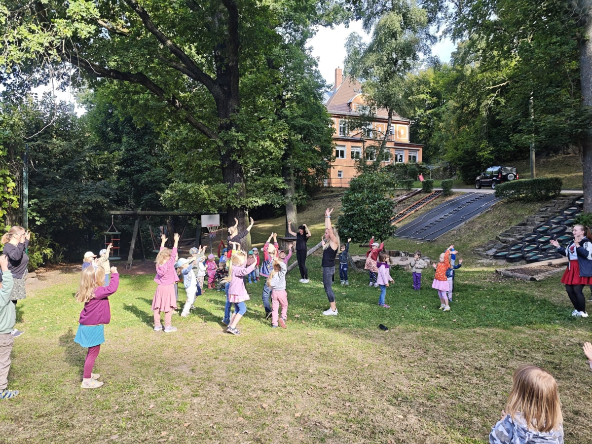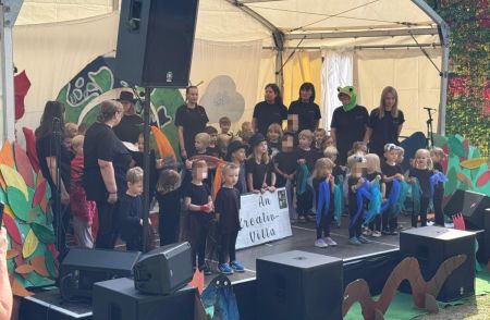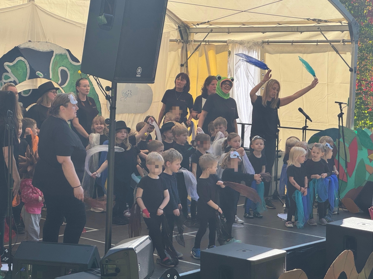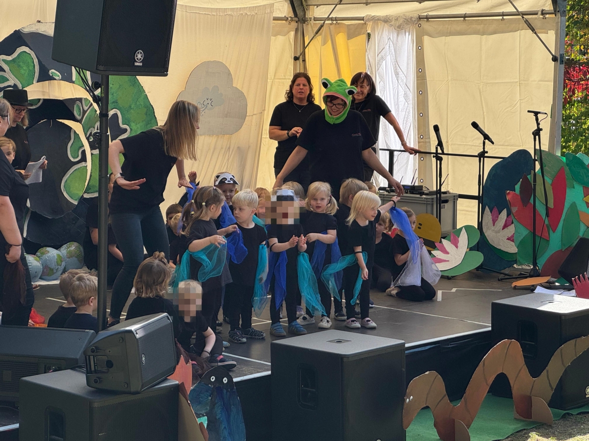 Jede Gruppe präsentierte ihr Lieblingslied, und es entstand ein kunterbuntes Konzert voller Freude und Bewegung. Besonders viel Spaß hatten die Kinder beim Orchester aus Haushaltsgeräten und beim schwungvollen Zeitungstanz.