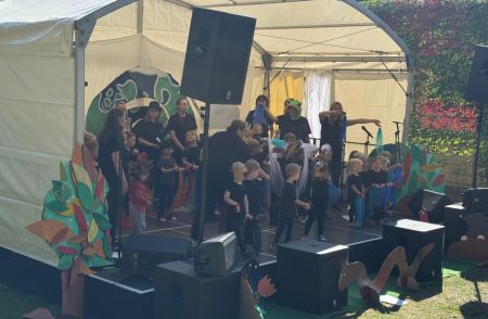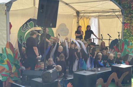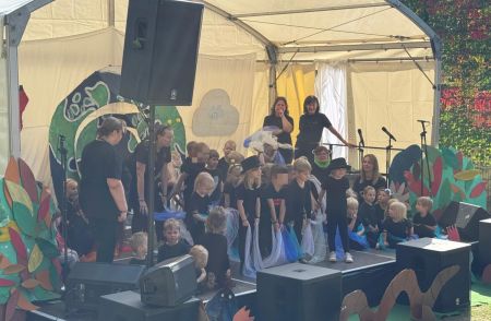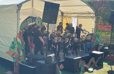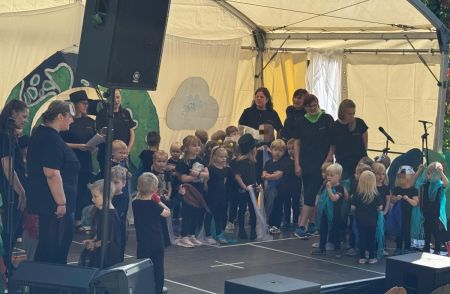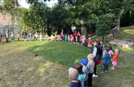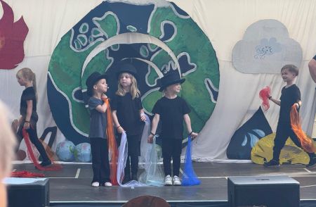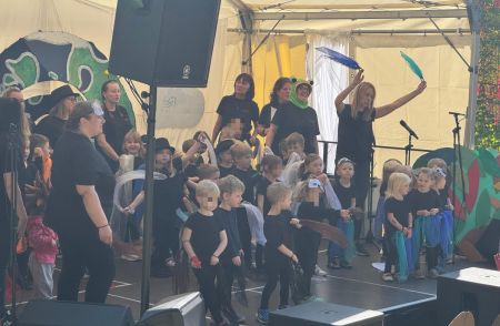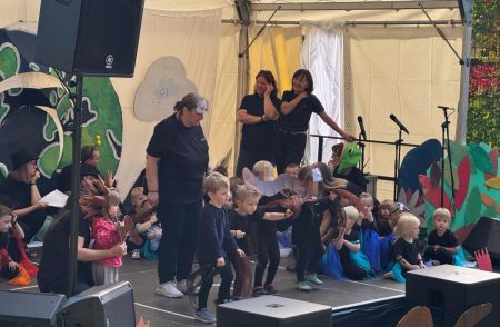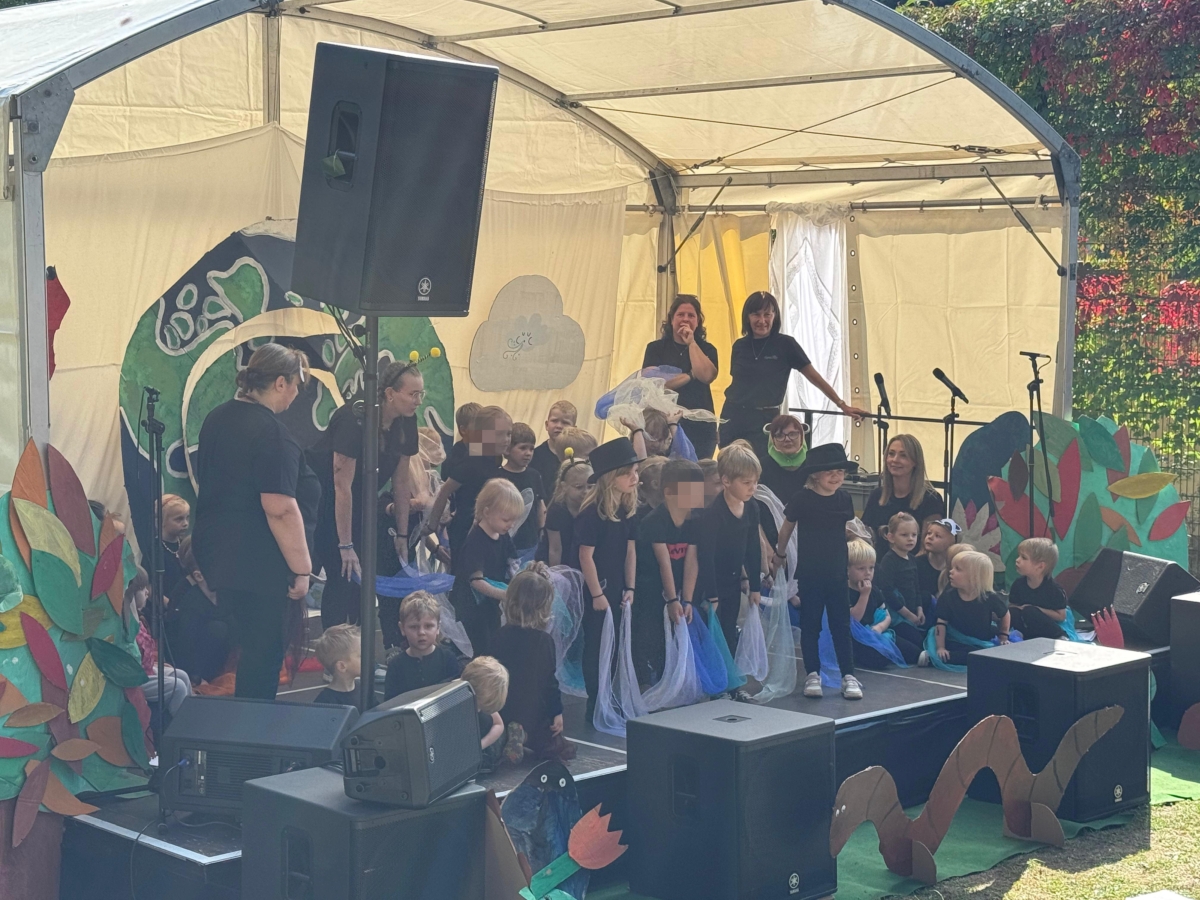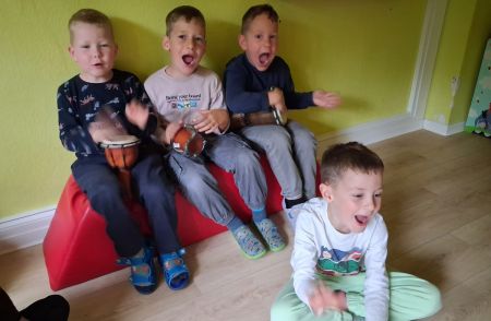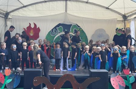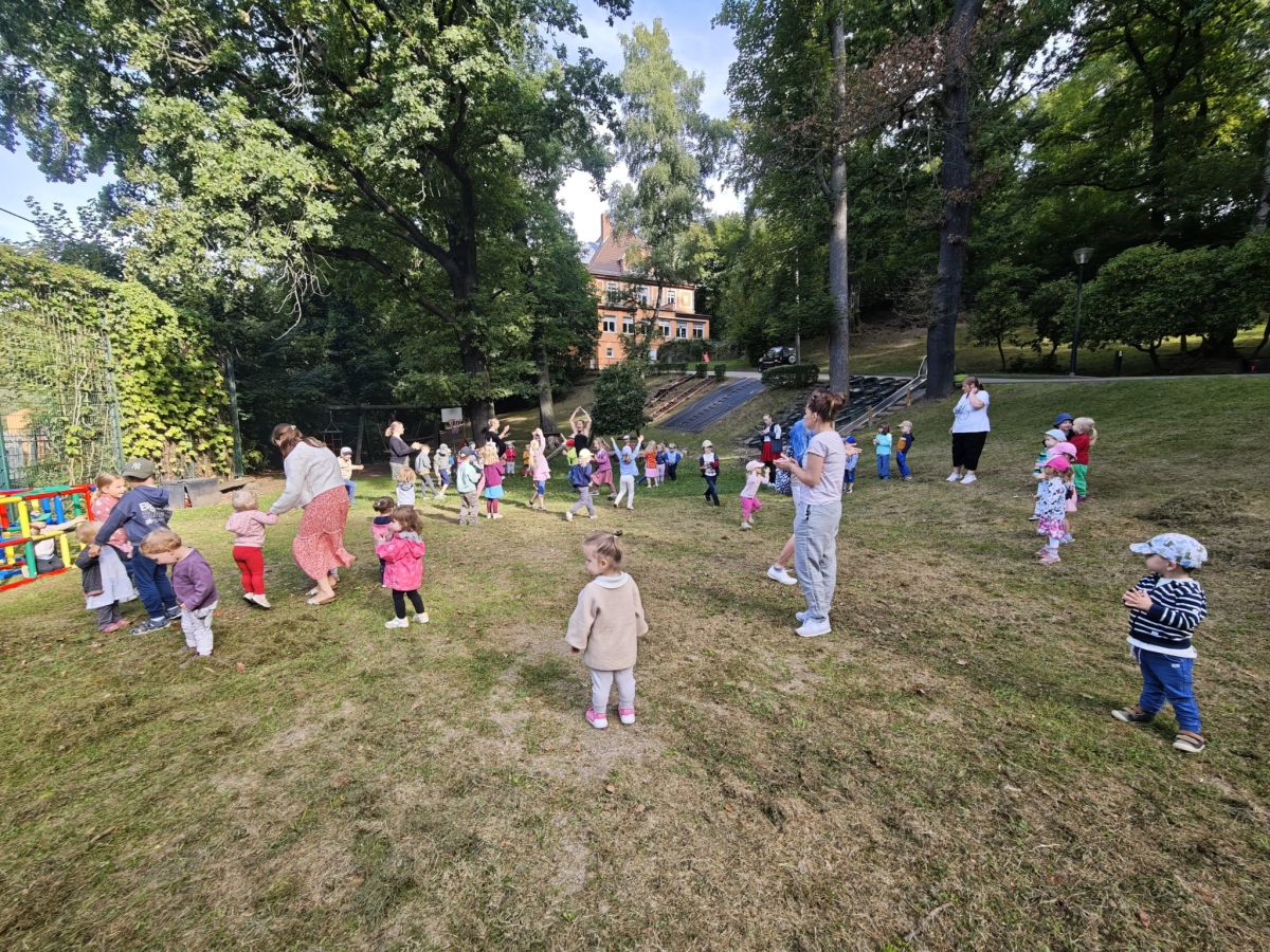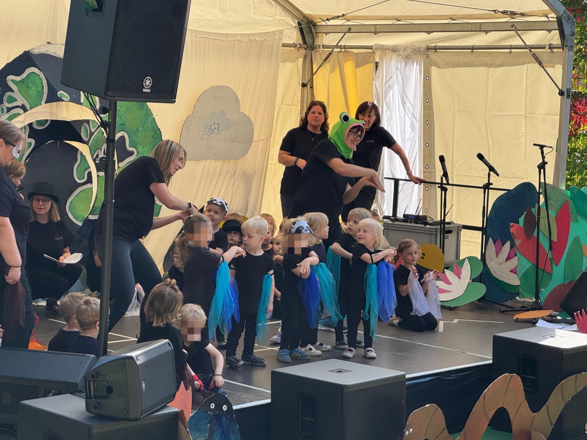 Jede Gruppe präsentierte ihr Lieblingslied, und es entstand ein kunterbuntes Konzert voller Freude und Bewegung. Besonders viel Spaß hatten die Kinder beim Orchester aus Haushaltsgeräten und beim schwungvollen Zeitungstanz.