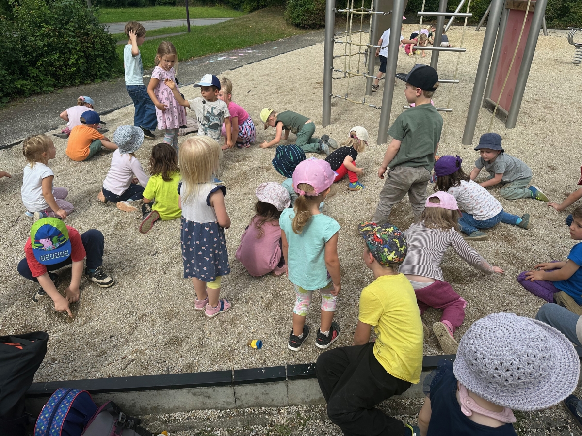 Bei unserer Sternenwanderung machten sich die Kinder – je nach Alter – auf unterschiedliche Wanderstrecken durch das Wohngebiet. Ziel war der Spielplatz, wo eine spannende Schatzsuche auf die Gruppen wartete.